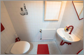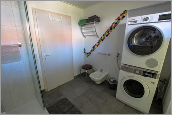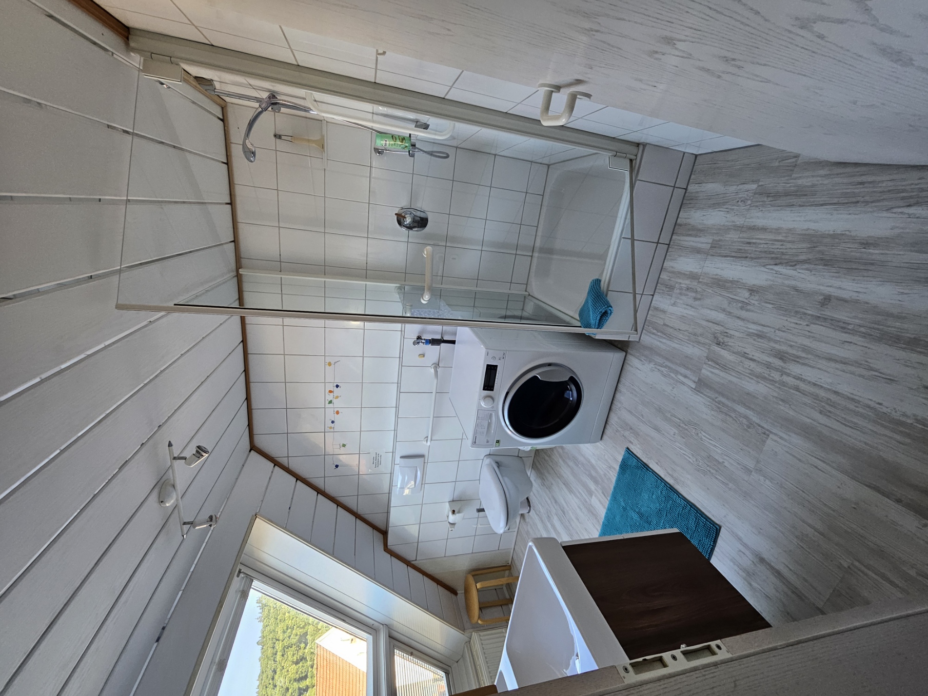 Dusche, WC, Waschbecken, Fön, große Handtuchhalter