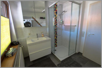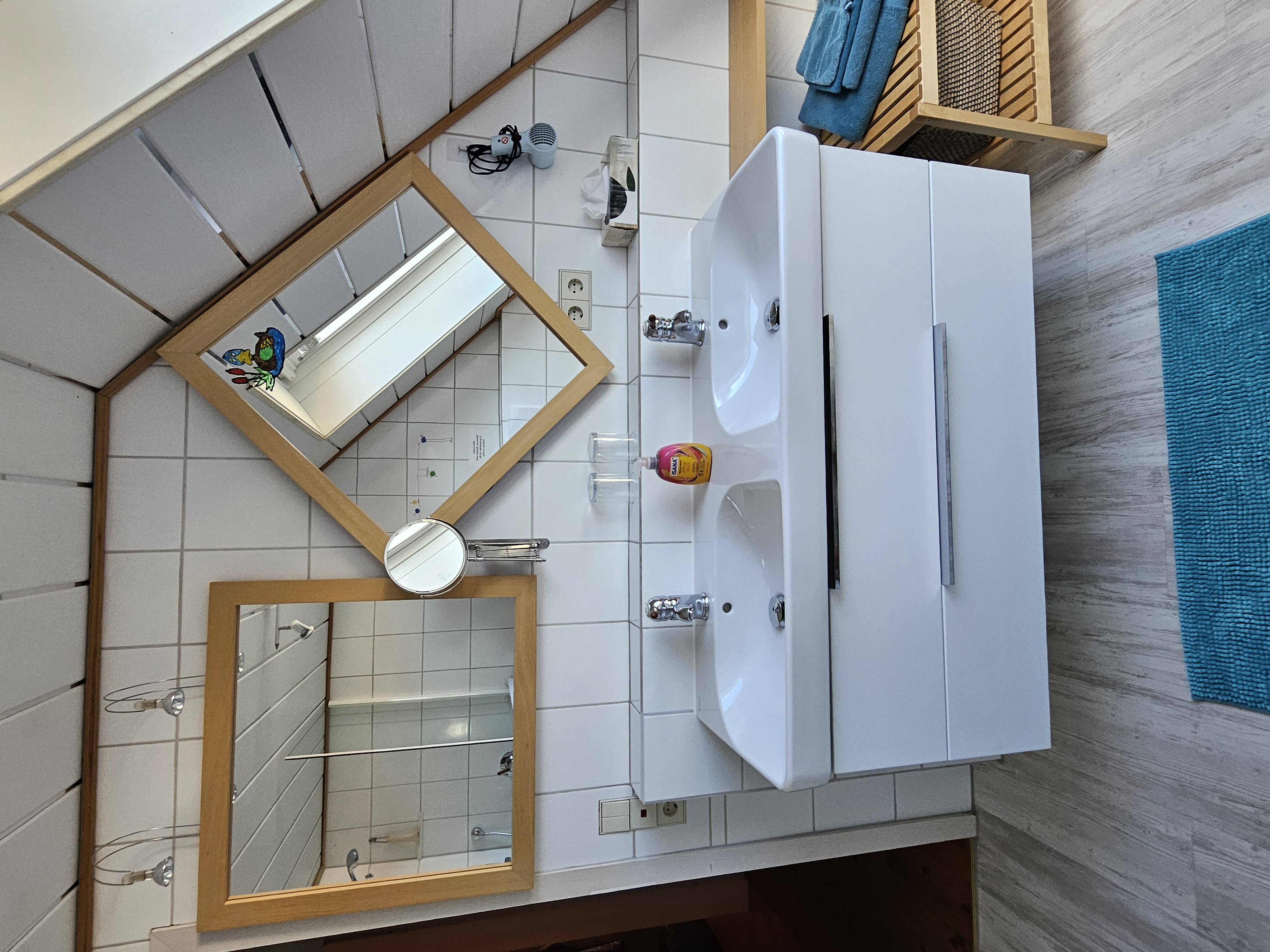 mit Dusche, beleuchteter Spiegelschrank, Waschbecken