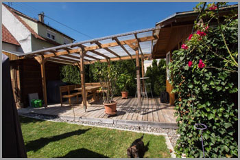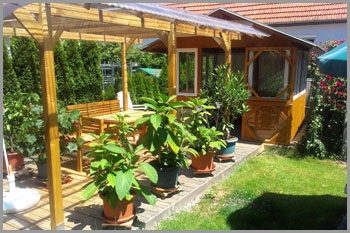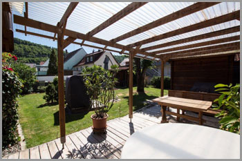 Zusätzlich hat die Ferienwohnung einen überdachten Freisitz und ein wetterfestes, beheizbares Gartenhaus und Grill im Garten.
