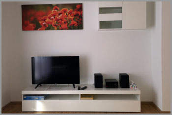 Flachbildfernseher, Stereoanlage mit CD Player, Anschluß für mp3 und USB